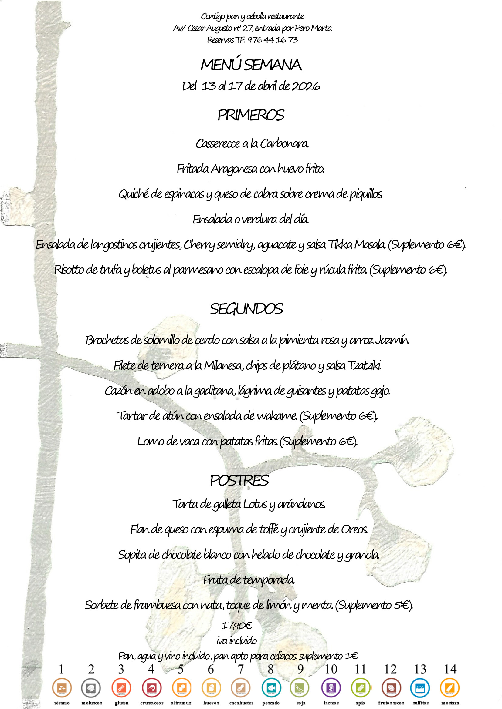 Este es nuestro menú para la semana del 13 al 17 de abril de 2026