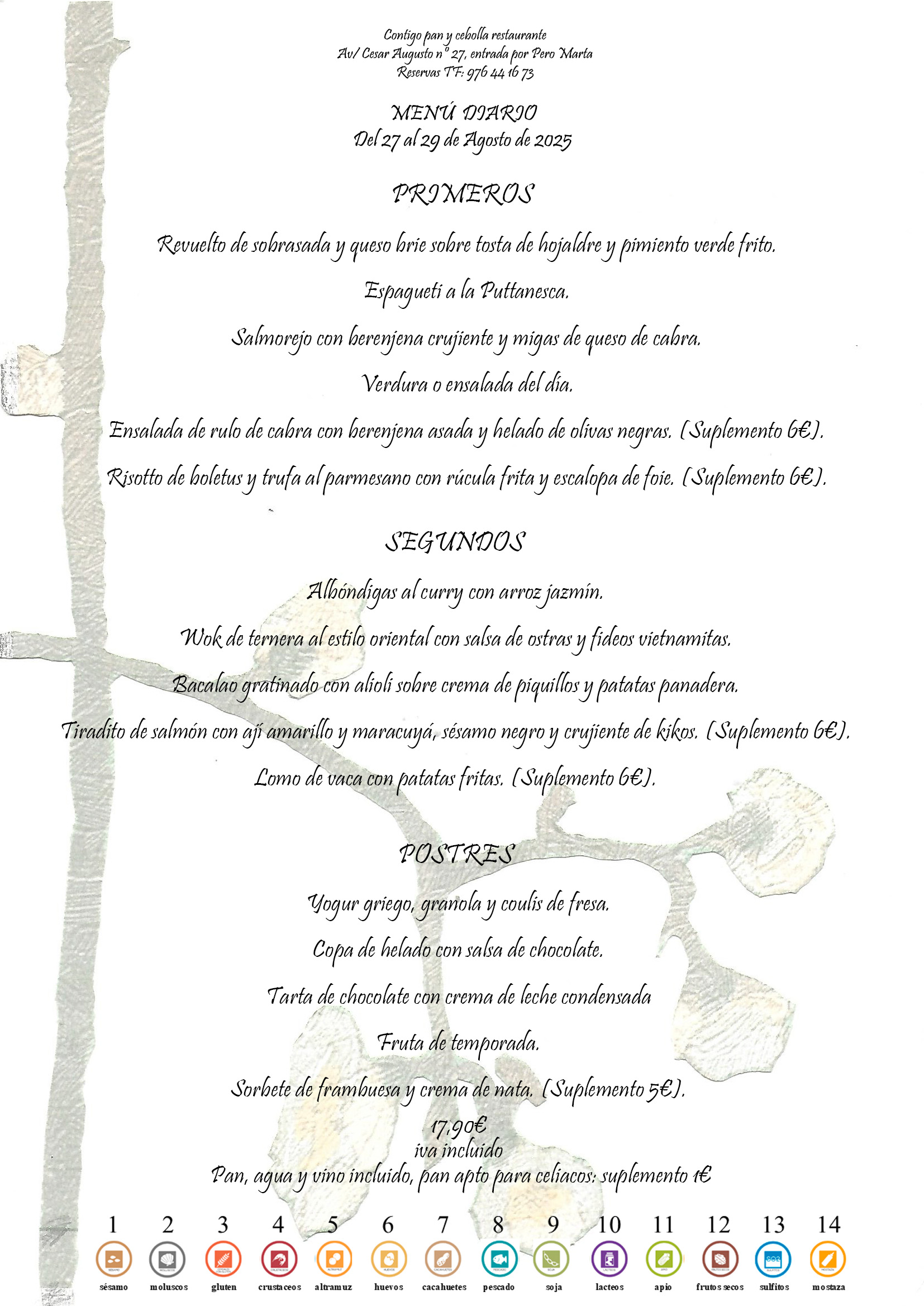 Este es nuestro menú para la semana del 27 al 29 de agosto de 2025