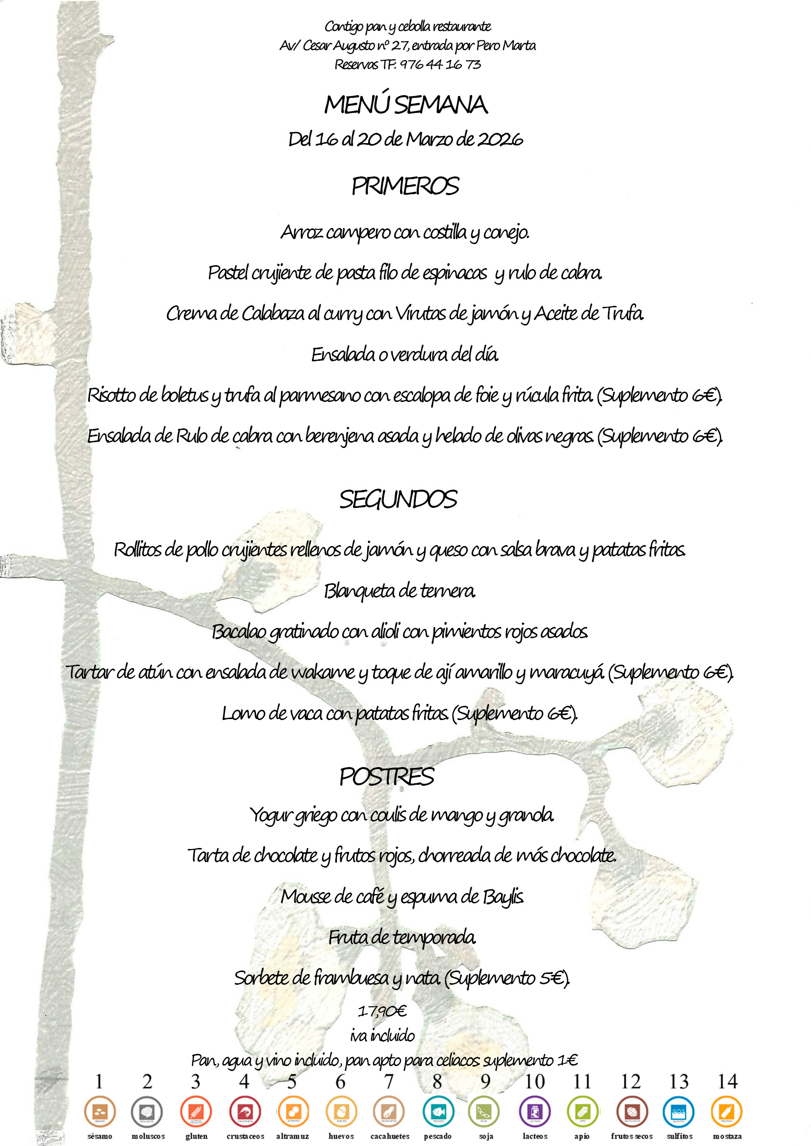 Este es nuestro menú para la semana del 16 al 20 de marzo de 2026