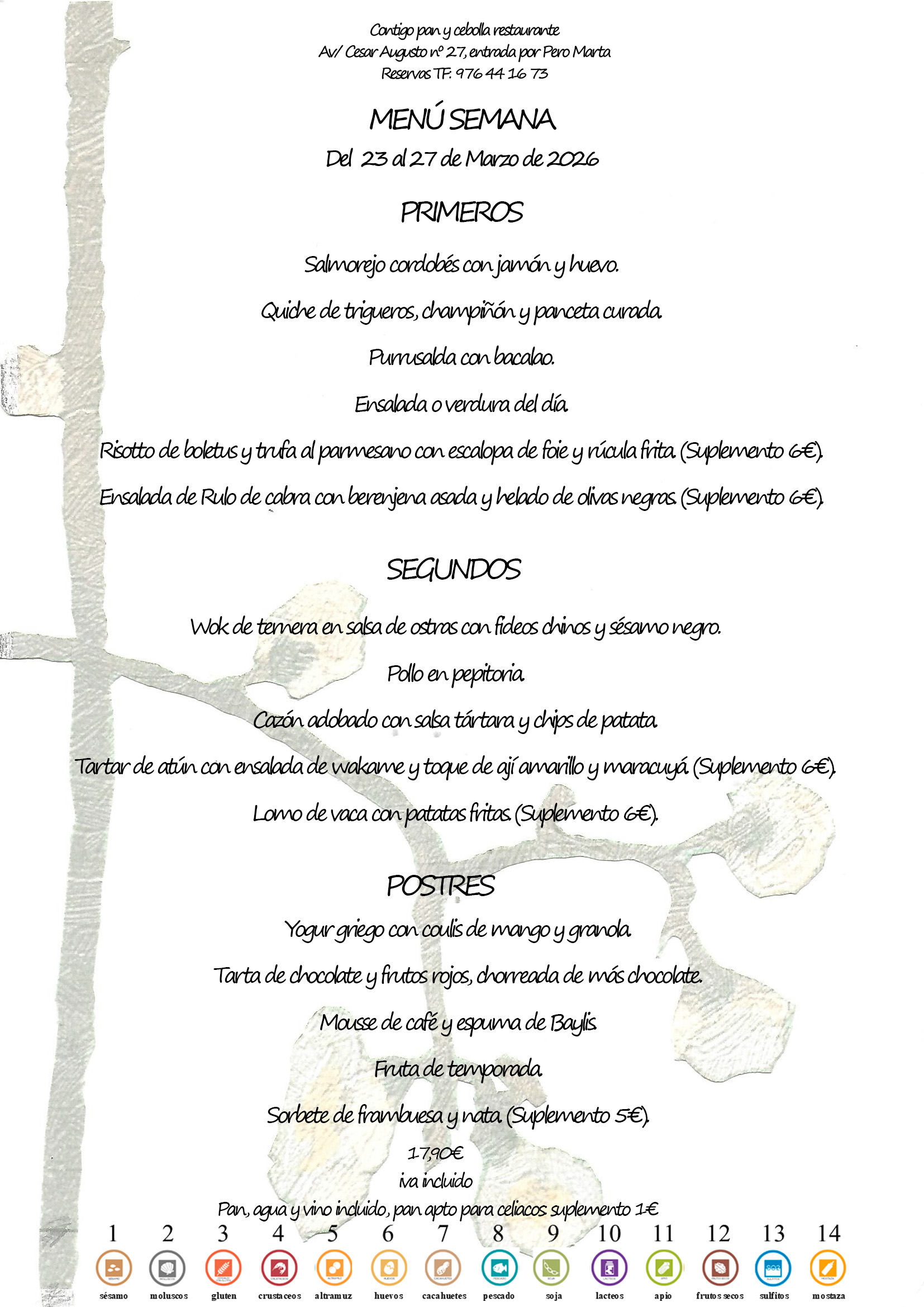 Este es nuestro menú para la semana del 23 al 27 de marzo de 2026