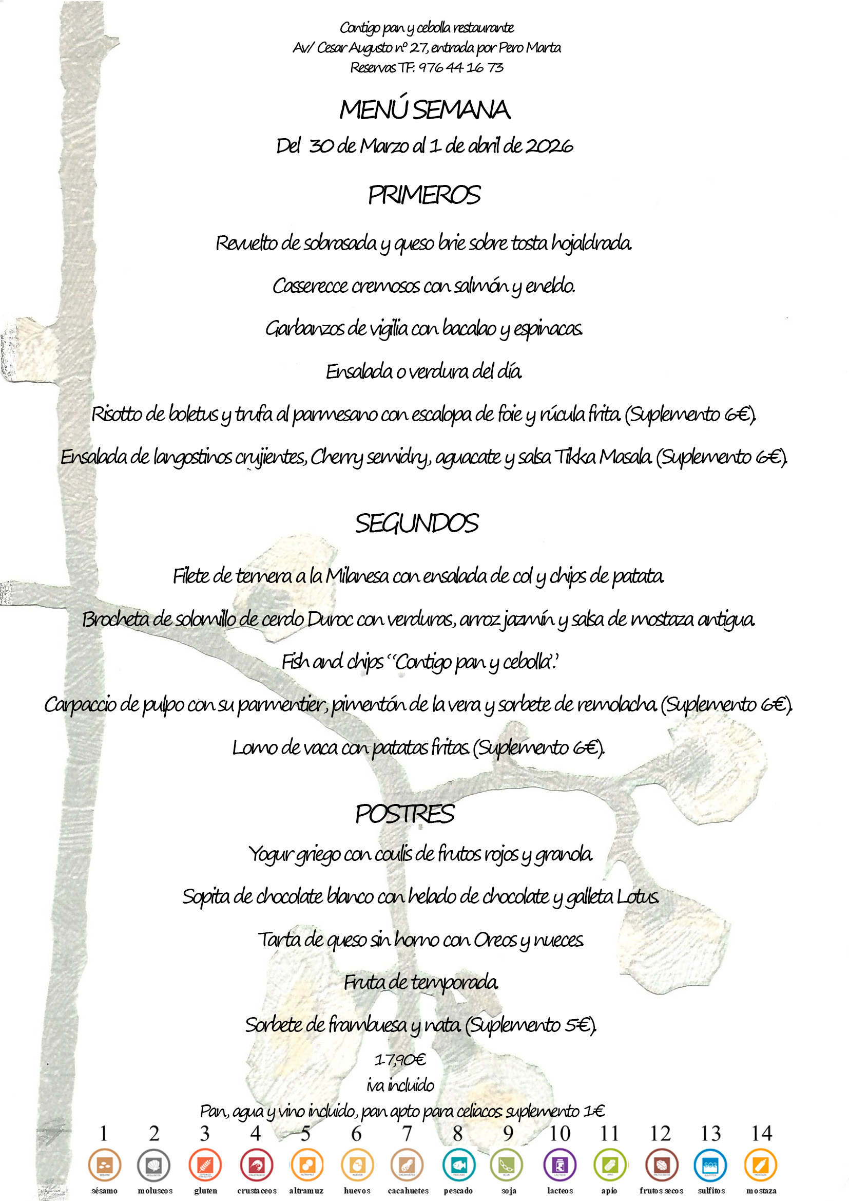 Este es nuestro menú para la semana de 30 y 31 de marzo y uno de abril de 2026