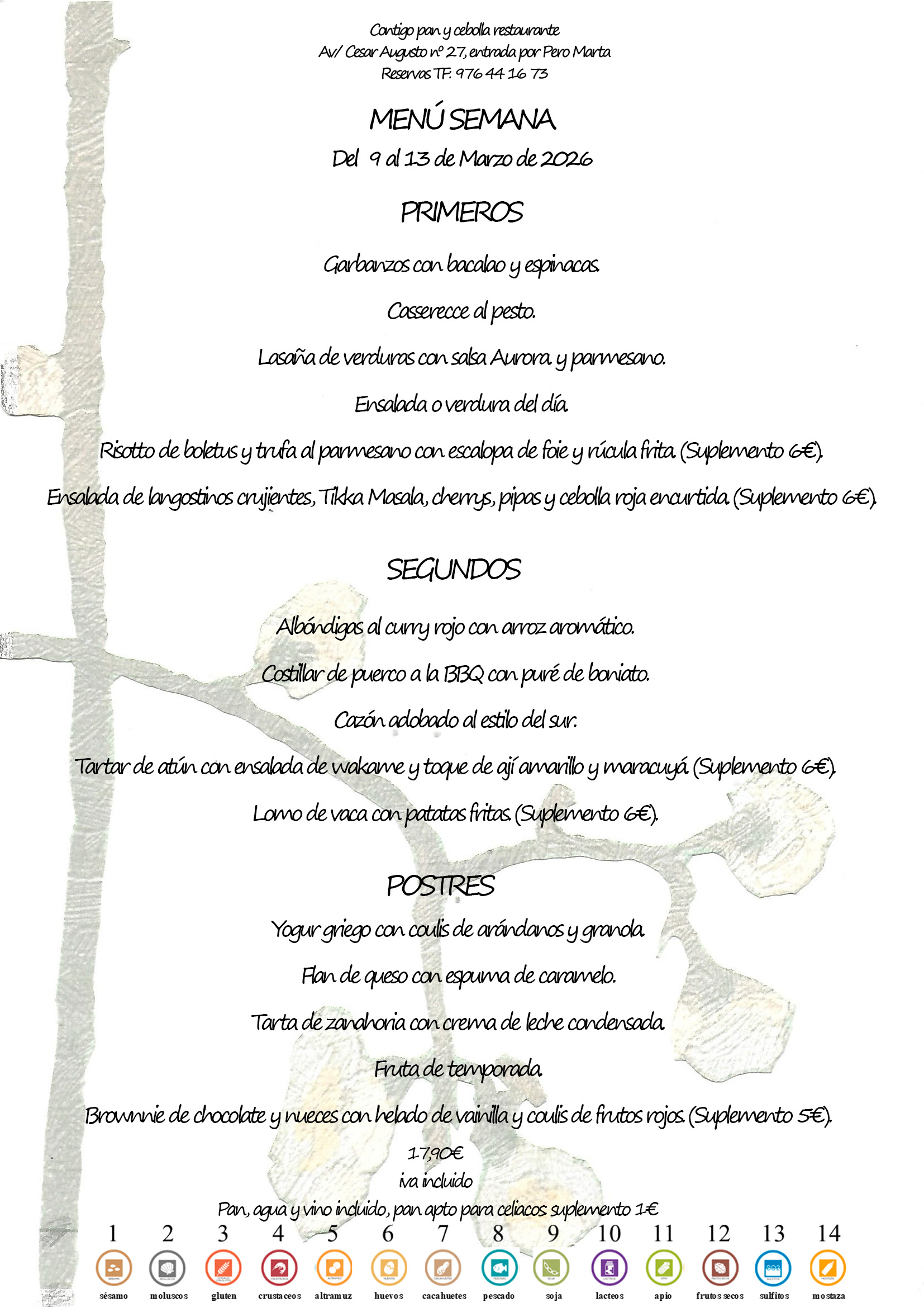 Este es nuestro menú para la semana del 9 al 13 de marzo de 2026