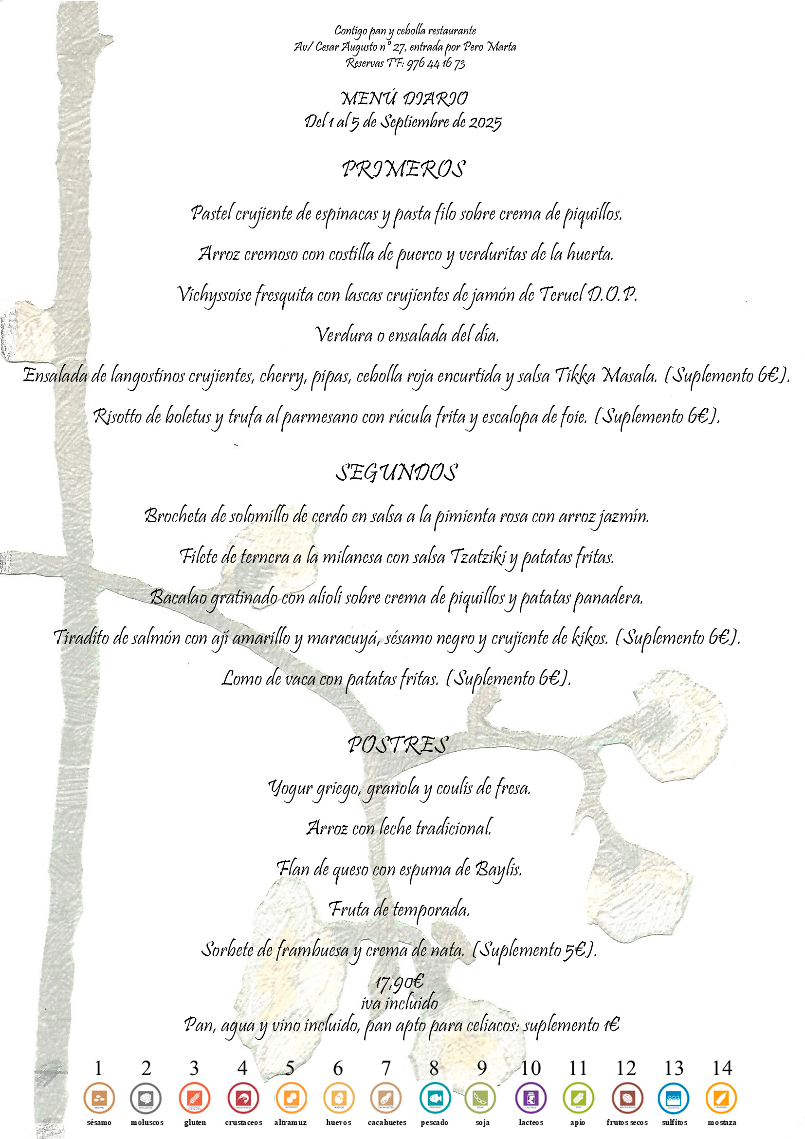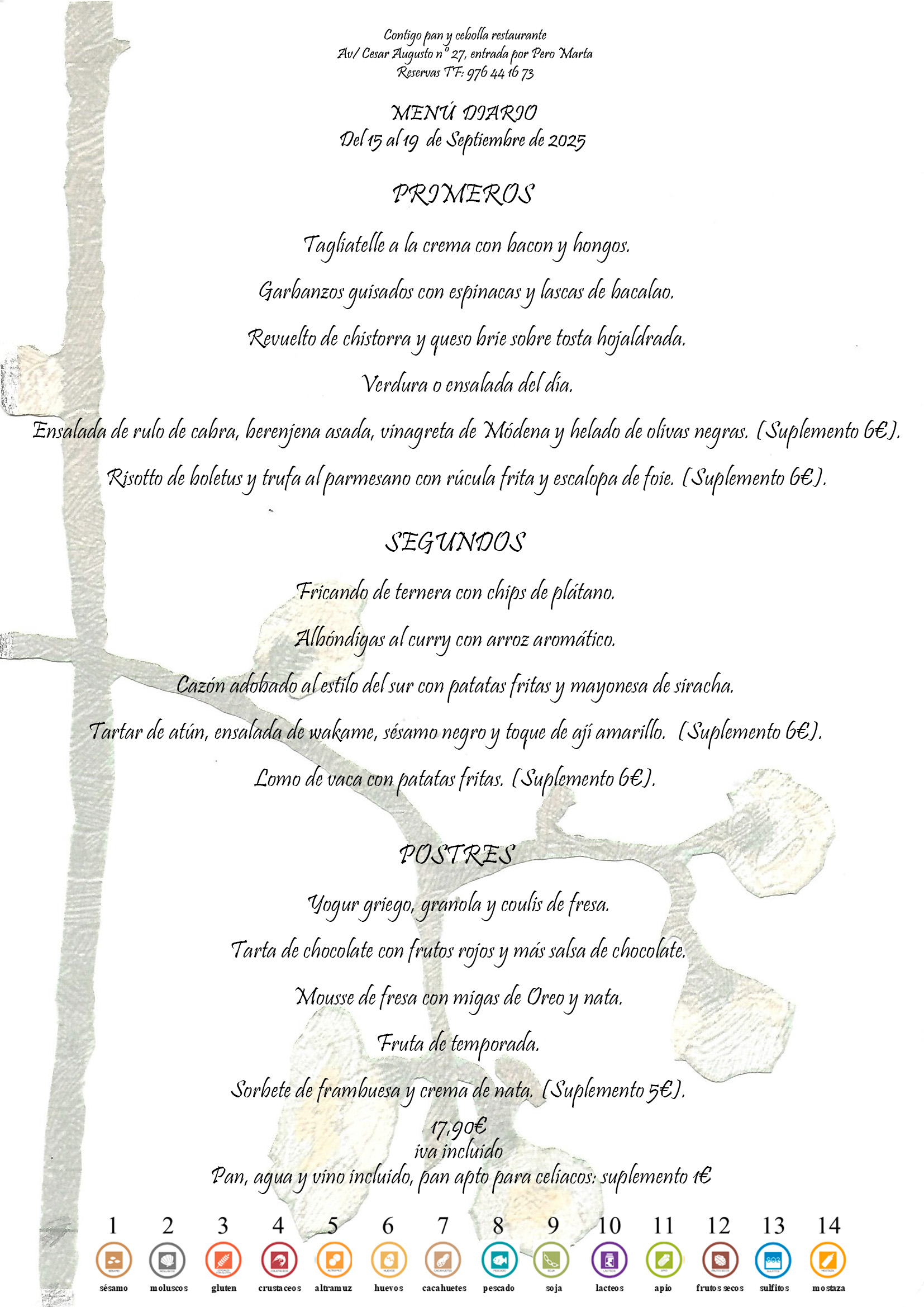 Este es nuestro menú para la semana del 15 al 19 de septiembre de 2025