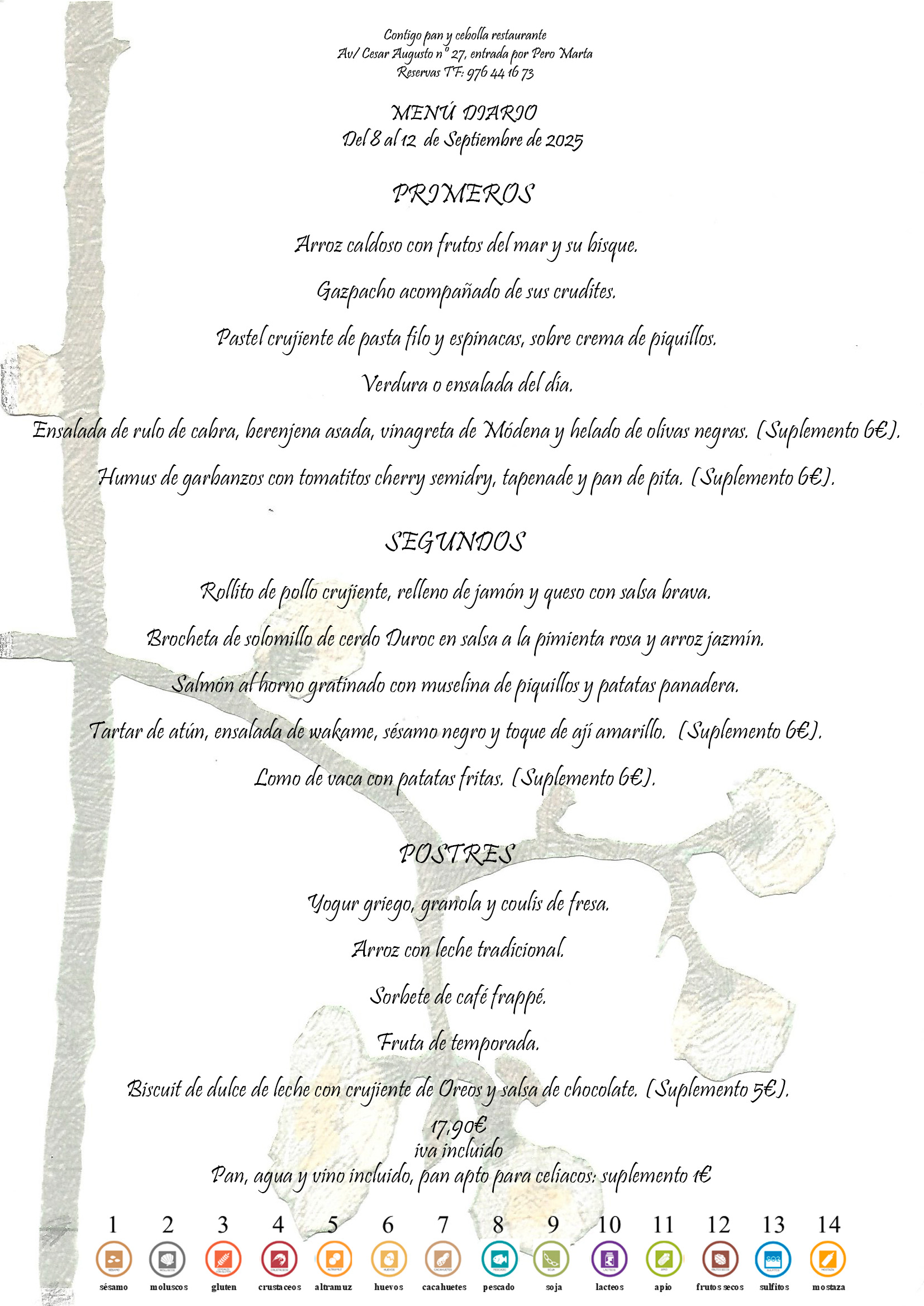 Este es nuestro menú para la semana del 8 al 12 de septiembre de 2025